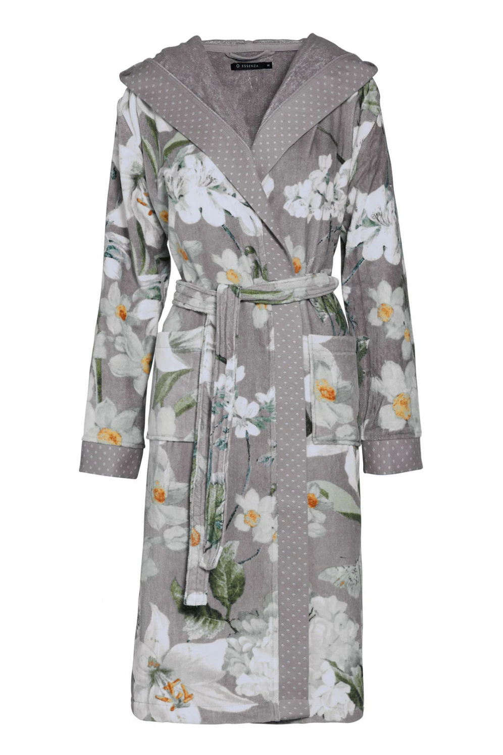 Liebe auf den ersten Blick! Hinter dem fantasievollen, opulenten Blumendesign dieses Essenza Bademantels steckt eine ganz besondere Geschichte: Es beruht auf Blumenstillleben der niederländischen Altmeister, wie sie im Rijksmuseum in Amsterdam gezeigt werden. Wunderschön sind auch die Ärmelabschlüsse und der moderne Schalkragen mit einem Jacquard-Punktmuster. Der Bademantel wurde zu 100% aus GOTS zertifiziertem Baumwollvelours gefertigt und fühlt sich durch den Frottee auf der Innenseite kuschelig weich an. Mit praktischer Kapuze, eleganter Kragenlösung und zwei aufgenähten Fronttaschen er ein idealer Begleiter nach einem wohltuenden Bad oder für den Sonntagmorgen-Kaffee. Er ist robust, feuchtigkeitsabsorbierend, umweltfreundlich und auf sozial verantwortliche Weise hergestellt. Hinweis: der Motivausschnitt kann vom Bild abweichen – jeder Artikel ist ein Unikat!